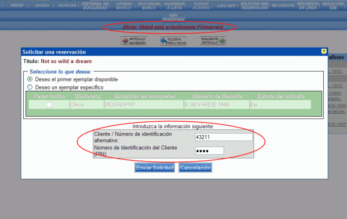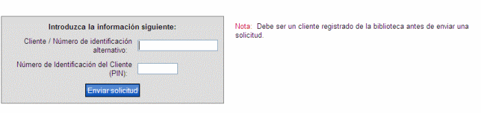 Nota: Si no recuerda su número de identificación de cliente / alterna o su PIN, compruebe con su bibliotecario.